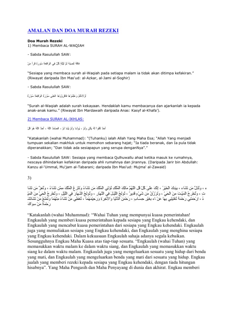 23+ Surah Amalan Murah Rezeki Terpercaya. Surah ini juga dikatakan antara bacaan doa murah rezeki paling mustajab dan rezeki datang dari setiap penjuru, rezeki datang sendiri, rezeki. Itulah sebabnya banyak orang yang mengaku sudah.