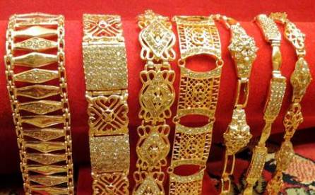 Berbagai model perhiasan kadar emas 24 karat, gelang, kalung, hingga gelang anak.
