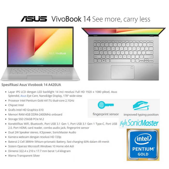 Informasi tentang Harga Laptop Asus Vivobook 14 A420Ua Intel Pentium 4417U Aktual. Asus vivobook 14 powered by an intel® pentium 4415u. Dengan intel® pentium® gold 4417u processor, sata3 256g m.2 ssd, dan ram 4gb yang siap digunakan, anda siap menghadapi apa yang ada di depan konfigurasi tes masa pakai baterai: